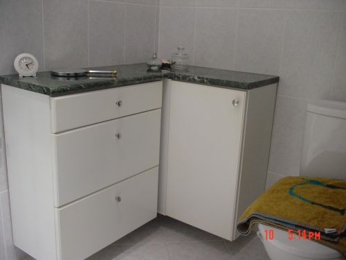 Fürdőszoba bútor gránitlappal borítva. Asztalos munka |