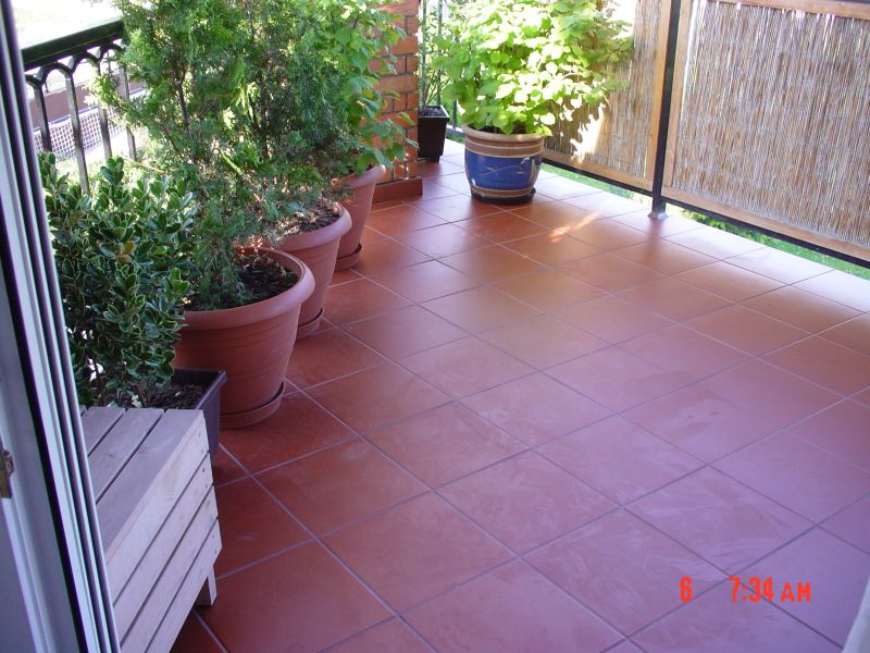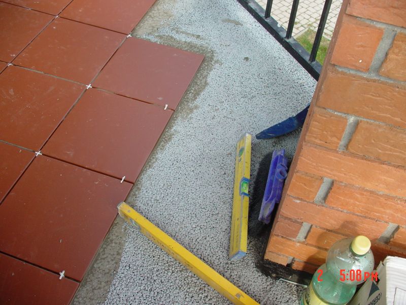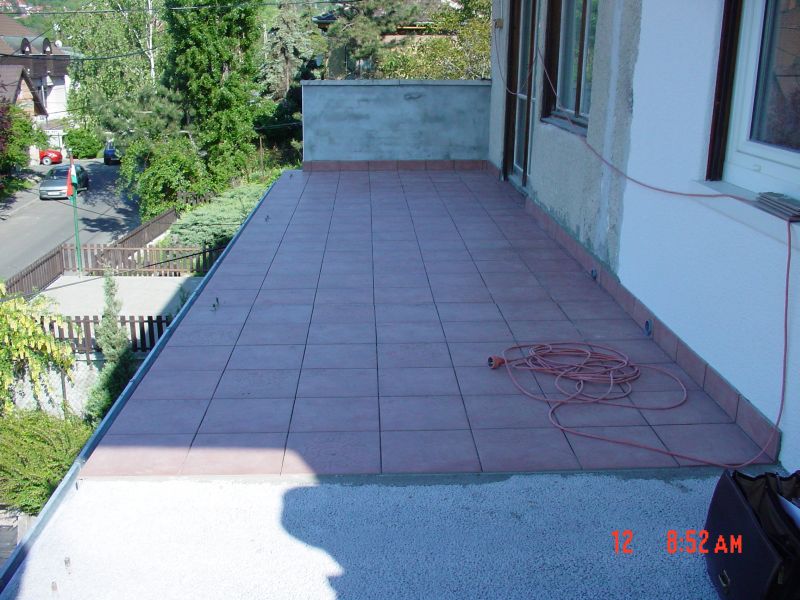 Csempézés, teraszburkolat négyzethálóban rakva.